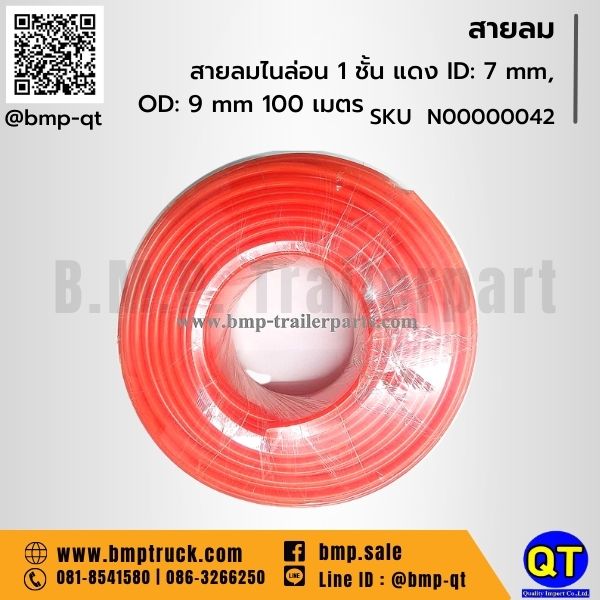 สายลมไนล่อน 1ชั้น แดง – 3/8หุ้น รูวงใน 7 mm.*รูวงนอก 9 mm.*ยาว 100 เมตร
